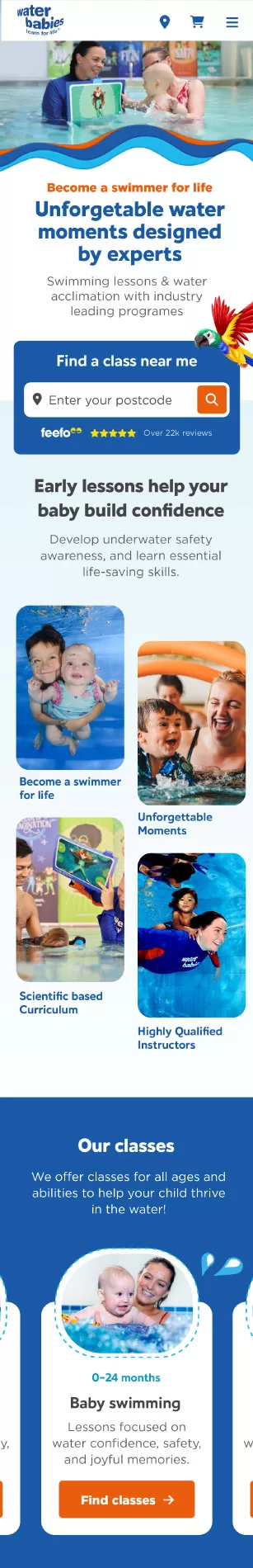 The new Water Babies website delivers a transparent, reassuring, and mobile-first experience that brings the brand’s care and credibility to life.