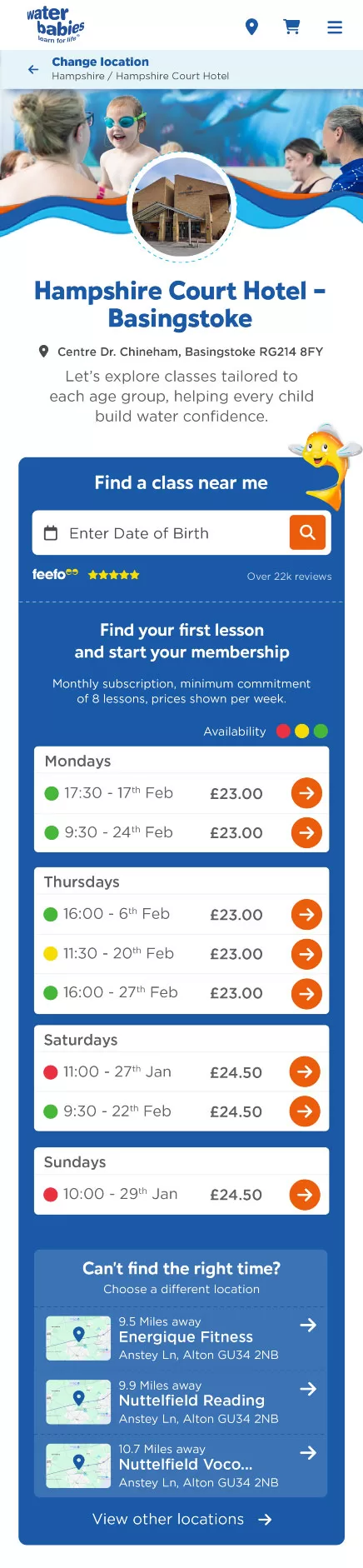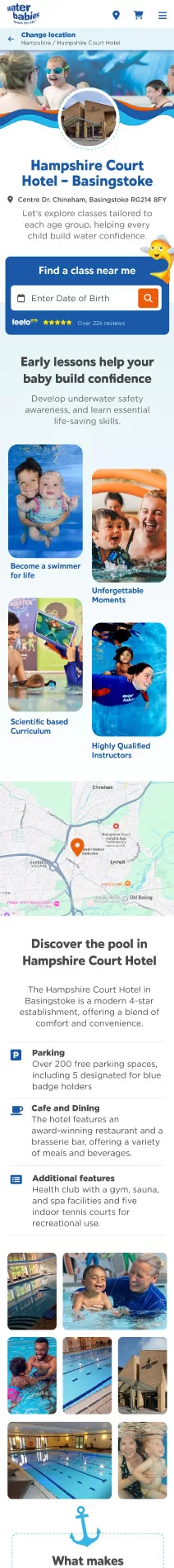 While working at MRS Digital, I led the UX and Design for the complete Water Babies website redesign — the world’s largest baby and toddler swimming school.